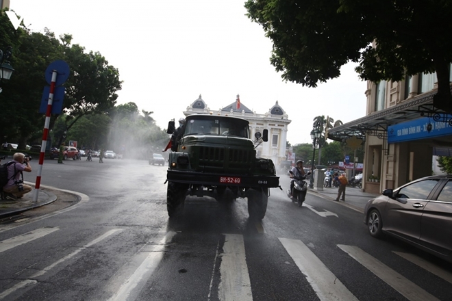 A number of other key areas, such as Ly Thuong Kiet, Hai Ba Trung, and Tran Hung Dao are fully sterilised on the morning of July 26. |