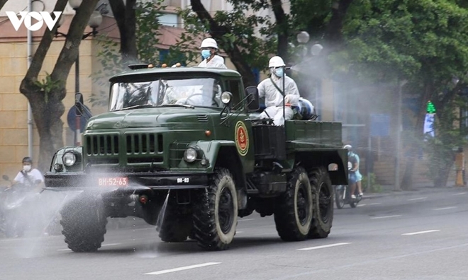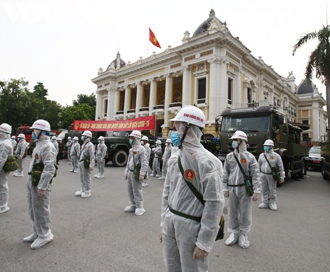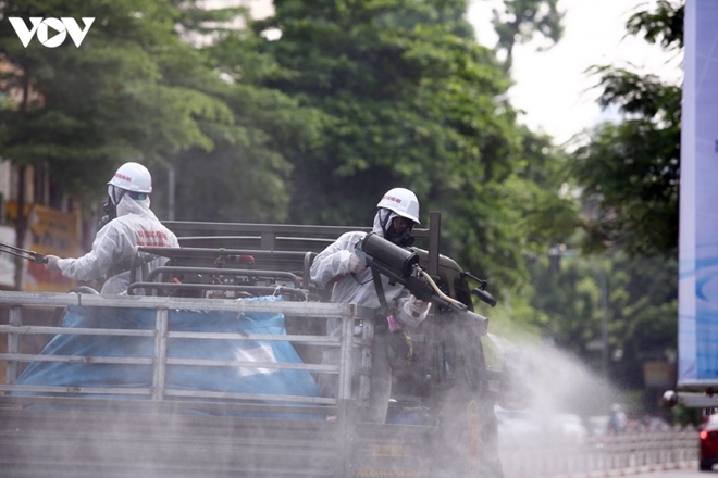 Armed forces disinfect Hanoi amid ongoing COVID-19 fight