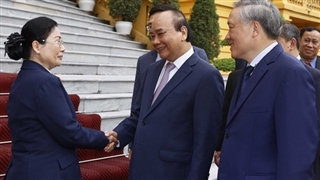 Hue is being accompanied by NA Vice Chairman Nguyen Duc Hai; NA Secretary General and Head of the NA Office Bui Van Cuong; Chairman of the NA Committee for External Relations Vu Hai Ha; Chairman of the NA Council for Ethnic Affairs Y Thanh Ha Nie K'dam; Chairman of the NA Economic Committee Vu Hong Thanh; and Chairman of the NA Committee for Defence and Security Le Tan Toi, among others.