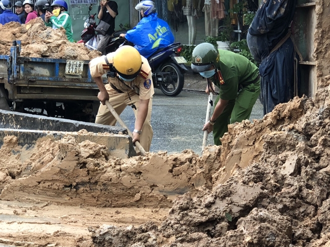 Informed of the incident, a group of policemen from the District 12 Police Station raced to the scene and cleaned the mud.
